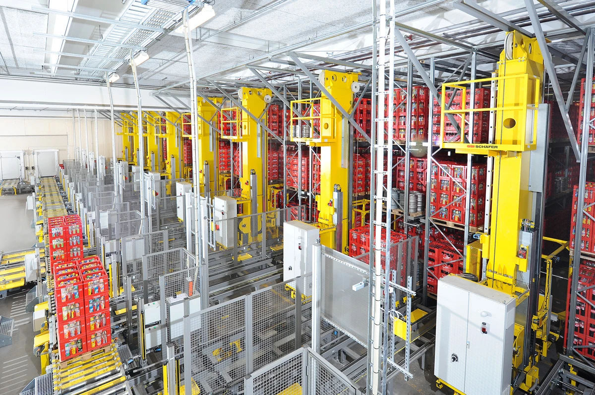 生產設備配置一座有8條巷道的一體式倉庫料架,可容納單層深6,000個棧板儲位,預期作為非酒精飲料空瓶的一個緩衝區以及用於儲存一小部份的生產。這個小型的高容量倉儲同樣地集結到運輸裝置循環非酒精飲料。 Schaefer配置八輛小型起重機(SCC)可提供每小時高達250個棧板儲存和取貨。如果沒有SSI Schaefer特殊開關磁阻電機的設計(SRM),此一體式自動倉庫架構(HBW)在即有復雜的建築物是很難運作的。不同於傳統SRMs,這種小型起重機不會通過開放式屋頂,而是以一個預先已裝配的零件完整交付,從基台底座到桅杆和油壓平台,包含移動的驅動器和開關櫃。透過入口大門,這使他們能夠被運輸及安裝。另外此系統的附加價值是高標準化的SCC零件能確保高可用性以及短期裝配和測試時間。在具有高報酬及時間緊迫的Carlsberg 項目中這是另一項優勢。對於此靈活的建築概念SCC已證實是重要而符合市場的,Lambrecht 說明此原因。